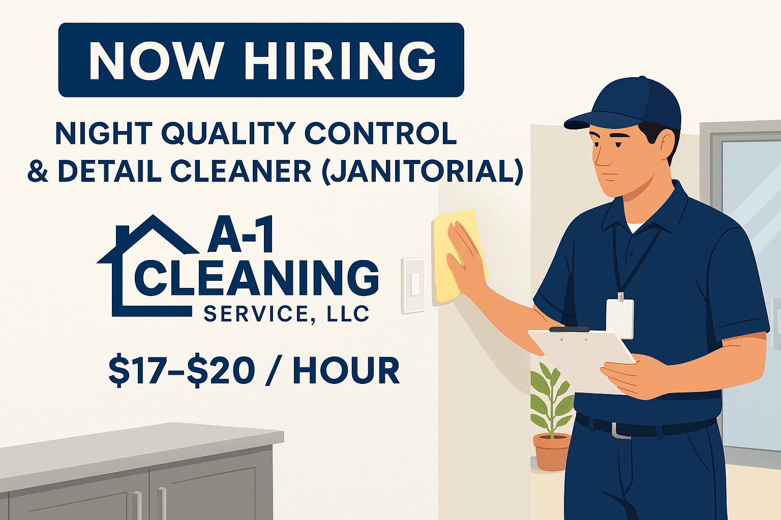 A‑1 Cleaning Service, LLC is a family‑owned company serving Humboldt County for over 30 years. We’re hiring a dependable, detail‑oriented Night Quality Control & Detail Cleaner to support our Janitorial Department.